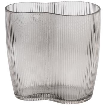 Unieke vaas in een organische vorm. De natuurlijke uitstraling wordt versterkt door de ribbel over de vaas heen. De vaas heeft een mooie grijze kleur. Enig voor in een strakke en natuurlijke omgeving.