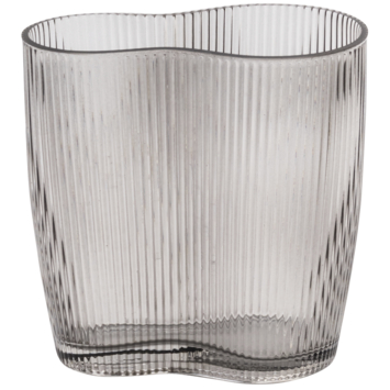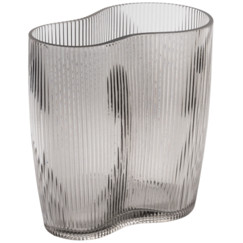 Unieke vaas in een organische vorm. De natuurlijke uitstraling wordt versterkt door de ribbel over de vaas heen. De vaas heeft een mooie grijze kleur. Enig voor in een strakke en natuurlijke omgeving.