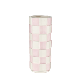 Breng de perfecte balans van kleur en stijl in je huis met deze vaas met ruiten in wit en roze. Een must-have voor wie houdt van subtiele elegantie en een vleugje zachtheid in het interieur.