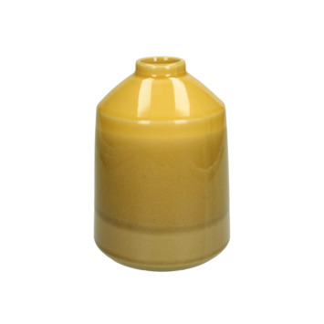 De Vaas steen geel is een robuuste bloemenvaas met een karakteristieke uitstraling. Deze is gemaakt van steen en in 3 tinten geel geglazuurd. De bloemenvaas heeft een doorsnede 12,7 cm en is 17,8 cm hoog.