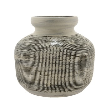 Vaas terracotta grijs wash Ø22x20 cm is een vaas met een echte natuurlijke uitstraling. De vaas past in ieder interieur en is ook zonder bloemen een decoratief item. Vaas terracotta grijs wash Ø22x20 cm is 20 centimeter hoog en heeft een diameter van 22 centimeter.