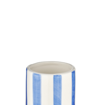 Of je nu een subtiele kleuraccent wilt toevoegen aan je woonkamer, eettafel of slaapkamer, deze vaas is het ideale statement piece. Het serene blauw en witte design zorgt voor een rustige en uitnodigende sfeer, terwijl de strakke lijnen en het elegante ontwerp een eigentijdse touch geven.