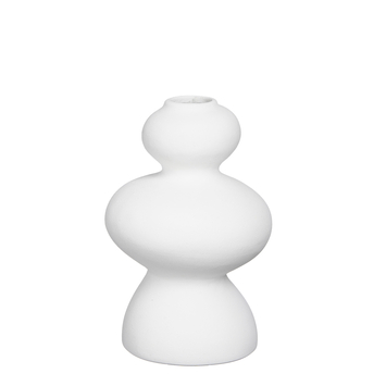 Met deze prachtige bloemenvaas heb je een waar kunstwerk in je huis. Hij bestaat uit drie bolvormen die verschillen van breedte en speels op elkaar geplaatst zijn met een stabiele voet als basis. De vaas heeft een universele witte kleur waardoor hij in elk type interieur past. Doordat hij gemaakt is van porselein is het een item dat je met gemak schoon kan houden. Met zijn 25 cm hoogte en een diameter van 14 cm is het een mooie vaas voor een klein, misschien zelfs zelf geplukt, bloemenboeket.