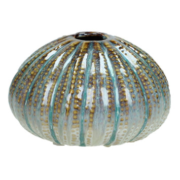 Mooie zee-egel. Staat geweldig in de vensterbank, ook zonder bloemetjes er in. Mijn exemplaar is overigens donkerblauw met oranje ipv groen met aqua (zoals op de foto vd website)