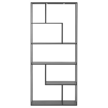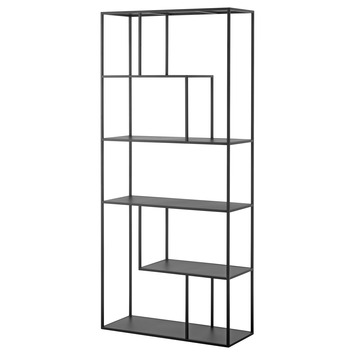 Vakkenkast Fedde is 90 cm breed en is een functioneel en modern meubel, gemaakt van metaal met een zwarte coating. Het meubel bestaat uit 7 vakken met 4 zwarte planken. De vakkenkast heeft een strak uiterlijk dat past in verschillende stijlen en ruimtes in het huis. Vakkenkast Fedde is in te delen zoals je zelf wilt, met bijvoorbeeld verschillende fotolijsten, planten, boeken of diverse woonaccessoires.