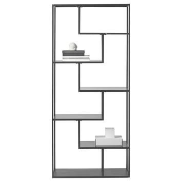 Vakkenkast Noor 85 cm is een functioneel en modern meubel, gemaakt van metaal met een zwarte coating. Het meubel bestaat uit 7 vakken met 5 zwarte planken. De vakkenkast heeft een strak uiterlijk dat past in verschillende stijlen en ruimtes in het huis. Vakkenkast Noor is in te delen zoals je zelf wilt, met bijvoorbeeld verschillende fotolijsten, planten, boeken of diverse woonaccessoires. Vakkenkast Noor is ook verkrijgbaar in een vakkenkast van 120 centimeter breed of een dressoir/sidetable.