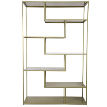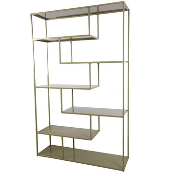 Vakkenkast Noor 120 cm is een functioneel en modern meubel, gemaakt van metaal met een goude coating. Het meubel bestaat uit 7 vakken met 5 zwarte planken. De vakkenkast heeft een strak uiterlijk dat past in verschillende stijlen en ruimtes in het huis. Vakkenkast Noor is in te delen zoals je zelf wilt, met bijvoorbeeld verschillende fotolijsten, planten, boeken of diverse woonaccessoires. Vakkenkast Noor is ook verkrijgbaar in een vakkenkast van 85 centimeter breed of een dressoir/sidetable.
