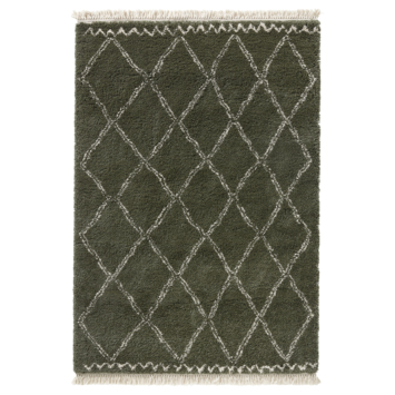 Het vloerkleed Varamin donker groen/wit is een warm hoogpolig karpet dat is voorzien van een fraai dessin en een satin look en is afgewerkt met mooie franjes. Het ruitpatroon zorgt voor een eigentijdse en trendy uitstraling en maakt je kamer op een fraaie wijze helemaal af. Met dit kleed maak je een echte statement: doei saaie vloer, hallo warm en sfeervol interieur! De karpetten uit deze serie zijn voorzien van originele, speelse berberpatronen en gemaakt van een oersterk materiaal: synthetisch textiel. Dit maakt dat het kleed zeer slijtvast is, neemt heel weinig vocht op, behoudt zijn kleur en is bijna niet statisch. Het is daarom geen probleem om voor langere tijd een meubel op het kleed te zetten. Met dit Varamin kleed haal je een echte blikvanger in huis die erg goed tot zijn recht komt in vele interieurs en woonstijlen. De hoogte van de Varamin collectie is 3,5 cm, dat maakt het een vrij dik kleed. Door het zachte materiaal is het erg prettig voor je voeten. Heerlijk als je op de bank zit, toch? Het kleed is zeer geliefd bij mens als huisdier! Ook kan je dit karpet kopen in de maat 160x230 cm en 200x290 cm. Daarom is het Varamin vloerkleed donker groen/wit 35 mm 120x170 cm een prachtige investering in je woning.