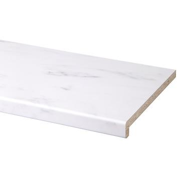 Deze decoratieve (overzet) vensterbank heeft een afmeting van 302x29 cm en is voorzien van een krasvaste toplaag en een spaanplaat basis. De marmer ivoor vensterbank heeft een bijna haakse neus. Door de strakke radius past de vensterbank in elk interieur en is ook als legplank te gebruiken. U reinigt de vensterbank gemakkelijk met bijvoorbeeld een allesreiniger