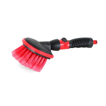 De Vero autowasborstel rond waterdoorlatend is ideaal voor klussen rondom het huis, zoal het schoonmaken van de auto, boot of caravan. De wasborstel is gemaakt van kunststof in de kleuren zwart en rood en heeft extra zachte pvc kunstvezels. De autowasborstel is voorzien van een universele snelkoppeling en een regelbare waterdosering.