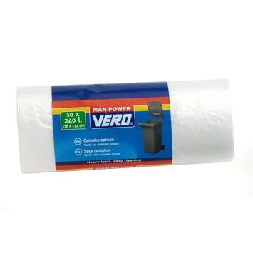 De Vero containerzakken 240 l 10 stuks zijn doorzichtige plastic containerzakken. De zakken zijn 118 bij 134 centimeter groot en kunnen gevuld worden tot een inhoud van 240 liter. De zakken worden geleverd per 10 stuks.