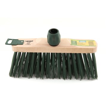 De Vero straatveger kunststof 27,5 cm is een harde veger. De bezem is gemaakt van FSC hout en heeft hardere groene kunstvezels. Daarmee is de bezem uitermate geschikt voor het verwijderen van grof vuil, betonresten en bouwafval. De kunststofvezels maken de bezem ook ideaal bij sneeuw en nat weer. De veger is 27,5 centimeter groot en is geschikt voor een steel met een diameter van 24 millimeter.