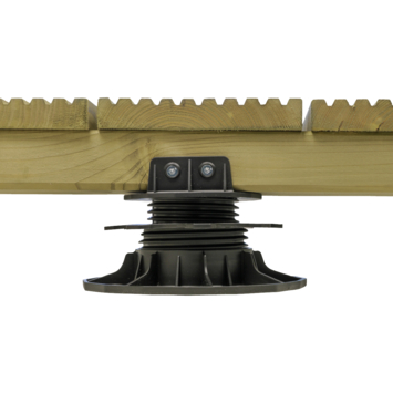 Met een verstelbare balkdrager kan een terras gelegd worden op een ondergrond welke niet volledig waterpas staat, zoals een ondergrond met een lichte helling. De balkdrager kan op diverse hoogtes gesteld worden. Plaats hierop een balk en check of deze goed waterpas staat. De standaard kopmaat van een tuinbalk is 4,4x6,8 cm. Deze verstelbare terrasdrager is ook ideaal om een gewenste hoogte te bereiken op bijvoorbeeld een balkon of een dakterras.