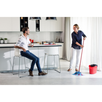 Met de SuperMocio 3Action van Vileda worden vloeren grondig gereinigd. De mop combineert 3 werkingen voor optimale prestaties: • Microvezels om te ontvetten • Schuurstroken om hardnekkig vuil aan te pakken • Rode vezels van gevlokt velours om vuil op te vangen en vast te houden tot het uitspoelen • De kop is machinewasbaar tot 60 °C