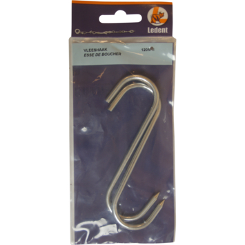 De Vleeshaak verzinkt 120 mm 2stuks is een tweezijdig bruikbare haak met S-vorm met oneindig veel functionele en decoratieve toepassingsmogelijkheden. Ideaal in de keuken om keukengerei zoals pannen, lepels en handdoeken aan op te hangen. De haken kunnen ook gebruikt worden om een originele presentatie te realiseren en klassieke concepten te doorbreken. De vleeshaak verzinkt 120 mm is verpakt als set van 2 stuks in een blister.