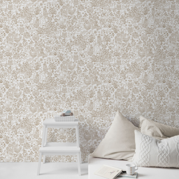 Het dessin is warm en lief, maar niet te tuttig. Het materiaal is prettig: het behangen zelf ging soepel.