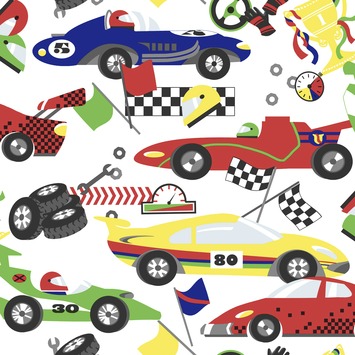 Vliesbehang race auto's multicolour (dessin 100117)