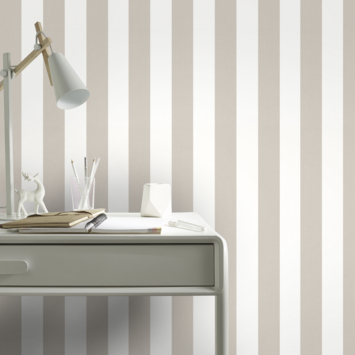 Vliesbehang streep taupe-wit (dessin 33-185)