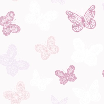 Vliesbehang vlinders wit-roze (dessin 100114)23.99