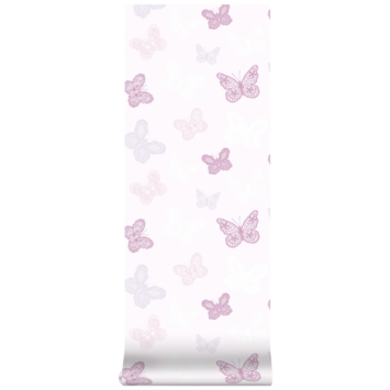 Vliesbehang vlinders wit-roze (dessin 100114)