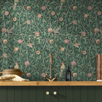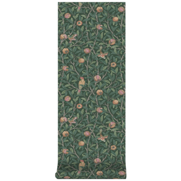 Vliesbehang William Morris at Home Bird & Pomegranate Diepgroen (dessin 124260)