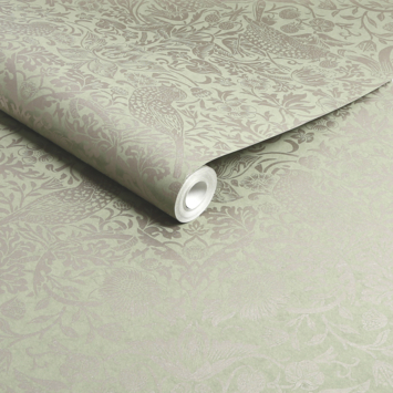 Vliesbehang William Morris at Home Strawberry Thief Fibrous Saliegroen (dessin 124237)