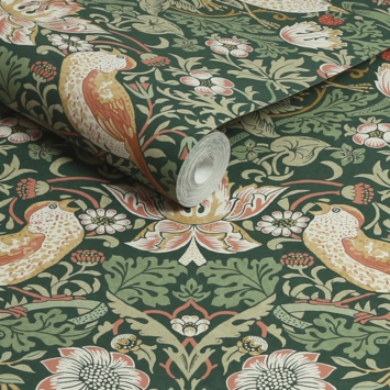 Vliesbehang William Morris at Home Strawberry Thief Rich Groen (dessin 124234)