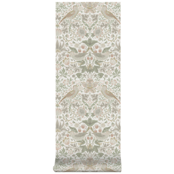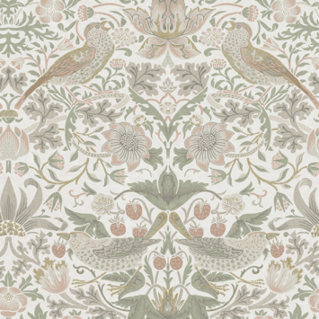 Vliesbehang William Morris at Home Strawberry Thief Saliegroen & Roze (dessin 124233)