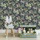 Vliesbehang woodland dieren donkerblauw (dessin 108568)