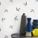 Vliesbehang zwaluw wit-blauw (dessin 33-266)