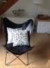Stoel Luuk is een vlinderstoel waarin je lekker kunt ontspannen. Door de natuurlijke materialen heeft de stoel een rustgevende uitstraling. Door zijn hippe eigentijds design is de vlinderstoel, ook wanneer deze niet wordt gebruikt, mooi om te zien. De stoel heeft een zitting die is gemaakt van buffelleder met een stiksel. Het frame is gemaakt van staal en bestaat uit 1 geheel. Stoel Luuk zwart is 92 centimeter hoog, 72 centimeter breed en 79 centimeter diep. Vlinderstoel Luuk is ook verkrijgbaar in het donkerbruin.