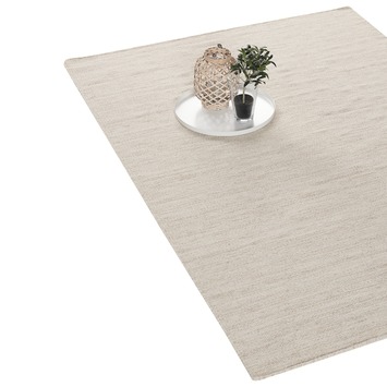 Vloerkleed Amritsar wit/beige bestaat uit een mix van 75% wol en 25% katoen. Het dun, met de hand geweven kleed heeft een natuurlijke look en is ook verkrijgbaar in de kleur grijs/zilver. Door zijn neutrale uitstraling is hij goed bruikbaar in verschillende interieurstijlen. Vul de ruimte met het 160x 230 cm grote vloerkleed Amritsar.