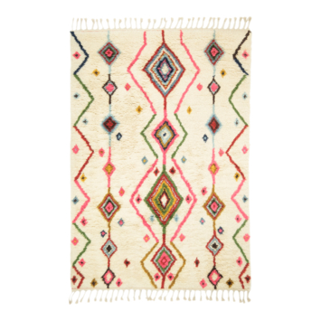 Geef je interieur een kleurrijke twist met de Marroc Happy! Dit wollen vloerkleed in Berber stijl is met oog voor detail en met de hand gemaakt. Wol heeft een warme uitstraling en is ook nog eens vuilafstotend. Dat is handig meegenomen wanneer het kleed op een plek ligt waar veel overheen wordt gelopen. De Marroc is een mooie toevoeging voor een knusse kinderkamer of misschien wel dé fleurige eyecatcher in jouw woonkamer. De franjes maken het zachte kleed af. Op zoek naar een uniek motief? Kies dan voor het kleed Marroc Happy!