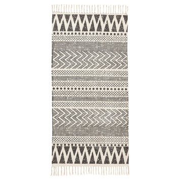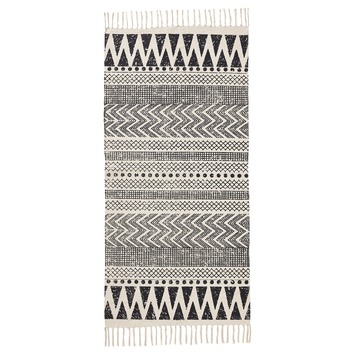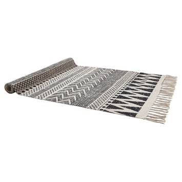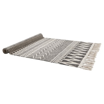 Het vloerkleed katoen grafisch 70x140 cm is een eyecatcher in huis. Leg het vloerkleed bijvoorbeeld onder de tafel of voor de bank. Zo stap je nooit meer op een koude vloer. Het vloerkleed is gemaakt van katoen, heeft een grafische grijze print en is 70 bij 140 centimeter.