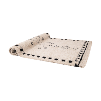 Vloerkleed Varamin heeft prachtige, losse dikke draden en een geweven vezel samenstelling van zacht polypropyleen (PP). Dit varamin vloerkleed biedt niet alleen een luxueuze textuur, maar heeft ook praktische voordelen. Dikke draden zorgen voor extra comfort en warmte, terwijl het geweven polypropyleen niet alleen zacht aanvoelt, maar ook geluid absorbeert, waardoor het de akoestiek in je ruimte verbetert.