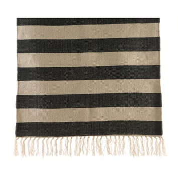 Vloerkleed zwart/crème 140x70 cm is een stijlvol vloerkleed. Het vloerkleed is zwart/crème gestreept en is dus echt een decoratieve toevoeging voor je inrichting. Het vloerkleed is van katoen. Vloerkleed zwart/crème 140x70 cm is 140 centimeter lang en 70 centimeter breed.