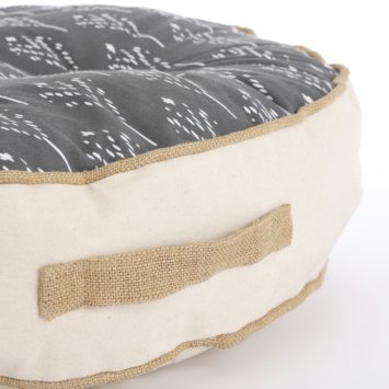 Kussen Dustin van In The Mood Collection is ideaal voor op een stoel, of ga er lekker mee op de grond zitten! Het ronde matraskussen is gemaakt van katoen en heeft aan de bovenkant een moderne, antraciete kleur. Het leuke motiefje maakt het geheel helemaal af. Waar leg jij hem neer? De afmetingen van het grondkussen zijn H13 x Ø70 cm.