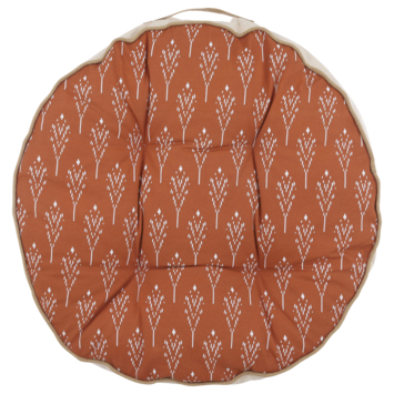 Kussen Dustin van In The Mood Collection is ideaal voor op een stoel, of ga er lekker mee op de grond zitten! Het ronde matraskussen is gemaakt van katoen en heeft aan de bovenkant een warme terra kleur. Het leuke motiefje maakt het geheel helemaal af. Waar leg jij hem neer? De afmetingen van het grondkussen zijn H13 x Ø70 cm.