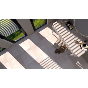 Geef jouw interieur een stoere en moderne uitstraling met de betonlooktegel in taupe. Deze keramische tegel combineert de ruige betonlook met het gemak van keramiek en past perfect in woonkamer, badkamer of andere ruimtes. Met een formaat van 60x60 cm en een dikte van 7,4 mm is de tegel makkelijk te leggen. De geglazuurde afwerking maakt schoonmaken simpel en zorgt dat hij geschikt is voor droge én vochtige plekken. Deze tegel vormt een stevige basis voor een eigentijdse, robuuste stijl.