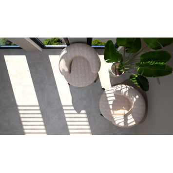 De betonlook tegel in grijs geeft je vloer direct een moderne uitstraling. Je gebruikt deze keramische tegel binnen, bijvoorbeeld in je badkamer of keuken. De tegel is 60 x 60 cm groot en 9 mm dik. Hij is gerectificeerd, waardoor je voegen extra strak worden. Je legt de tegel makkelijk over vloerverwarming en -verkoeling, zo blijft de vloer het hele jaar aangenaam. De tegel heeft een matte, geglazuurde afwerking met een subtiel reliëf. Dit maakt schoonmaken eenvoudig en zorgt voor een natuurlijke structuur onder je voeten. Per pak krijg je 1,44 m² tegel. Met deze tegel leg je een vloer die strak oogt en praktisch blijft in onderhoud.