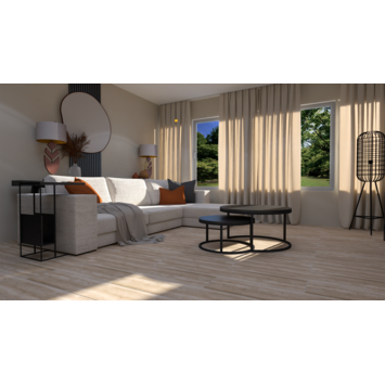 De houtlooktegel in beige biedt je de warme uitstraling van hout zonder het onderhoud. Deze keramische tegel, met afmetingen van 23,3x120 cm en een dikte van 8,7 mm, is perfect voor elke ruimte, inclusief ruimtes badkamer. De geglazuurde afwerking maakt de vloer betrouwbaar en eenvoudig schoon te houden. Dankzij het unieke reliëf en de variaties in kleur en textuur is elke tegel een uniek kunstwerk. Deze houtlooktegel is de ideale keuze voor iedereen die stijlvolle en functionele oplossingen zoekt.