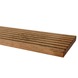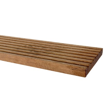 Deze vlonderplank van 180 cm lengte kan worden gebruikt voor het maken van een duurzame vlonder of terras. De dikte van de plank is ca. 1,8 cm en de breedte is ca. 14,5 cm. Omdat deze plank 180 cm lang is werk je hiermee erg snel en beperk je het aantal kopse naden in het terras. Natuurlijk is de plank ook eenvoudig op iedere gewenste lengte te zagen. Deze plank is geschaafd zodat het hout een mooie gladde afwerking heeft en je minder kans op splinters hebt. Verder is de vlonderplank 2-zijdig geprofileerd zodat je zelf kunt kiezen welke zijde je als zichtzijde wilt gebruiken. Het profiel zorgt voor antislip en geeft de vlonder een luxueuze uitstraling.