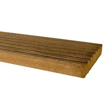 Deze vlonderplank van 210 cm lengte kan worden gebruikt voor het maken van een duurzame vlonder of terras. De dikte van de plank is ca. 2,4 cm en de breedte is ca. 14,5 cm. Omdat deze plank 210 cm lang is werk je hiermee erg snel en beperk je het aantal kopse naden in het terras. Natuurlijk is de plank ook eenvoudig op iedere gewenste lengte te zagen. Deze plank is geschaafd zodat het hout een mooie gladde afwerking heeft en je minder kans op splinters hebt. Verder is de vlonderplank 2-zijdig geprofileerd zodat je zelf kunt kiezen welke zijde je als zichtzijde wilt gebruiken. Het profiel zorgt voor antislip en geeft de vlonder een luxueuze uitstraling.