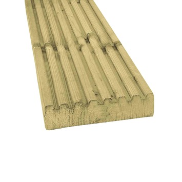 De vlonderplank vuren 300x2,8x14,5 cm is geschikt voor het leggen van een vlonder of terras. De plank is gemaakt van geimpregneerd vuren hout. Het hout gaat daardoor lang mee en is perfect voor in de tuin. De plank is eenzijdig geprofileerd, de bovenkant heeft groeven en de onderkant is vlak. De plank is 300 centimeter lang, 2,8 centimeter dik en 14,5 centimeter breed.