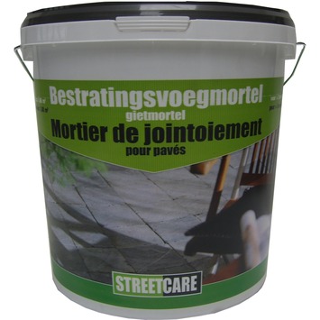 Waterdoorlatende voegmortel antraciet (12kg). Na mengen met water is de gietmortel geschikt om op uw droge bestrating te gieten. Eventueel kunnen de voegen nog gevuld en gedicht worden met een rubberen trekken. De voegen zullen onkruidvrij blijven nadat het geheel is uitgehard.