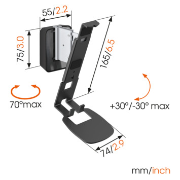 Met de Vogel's SOUND 4201 wandsteun kunt u een Sonos ONE (SL) of PLAY:1 naadloos aan de wand te bevestigen. Of u de luidspreker nu hoog of laag hangt, in of uit het zicht, met de functie voor draaien en kantelen kunt u de luidspreker altijd in de stand zetten die het beste geluid geeft.