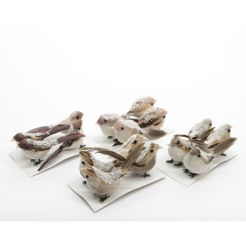 Om de kerstboom met versiering compleet te maken zijn deze populaire vogeltjes een sfeervolle aanvulling. In de kleur bruin/wit. Afmeting circa 10,5 cm. Combineert goed met de kerstversiering in een natuur thema. Per 4 stuks in een kunststof transparant box.