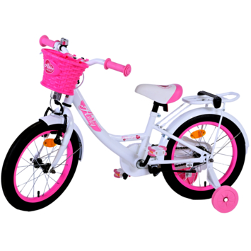Laat het fietsavontuur beginnen met de Volare Ashley 16 inch kinderfiets, een stijlvolle metgezel voor jonge fietsers met gevoel voor design! Veiligheid wordt gecombineerd met stijl, met een handrem, terugtraprem, afneembare zijwieltjes en een gesloten kettingkast. Deze elegante fiets heeft een geïntegreerde achterdrager in het frame en een comfortabel zacht zadel. Het handige rieten mandje voegt niet alleen flair toe aan de fiets, maar biedt ook praktische opbergruimte. Verstelbaarheid van het zadel en stuur maakt deze fiets geschikt voor groeiende avonturiers. Geleverd inclusief al het montagemateriaal voor een moeiteloze start van het fietsplezier!