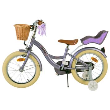 Leren fietsen wordt een feestje met de Volare Blossom 16 inch kinderfiets in paars! Veiligheid is topprioriteit, daarom is deze fiets voorzien van zowel een handrem als een terugtraprem, afneembare zijwieltjes en een gesloten kettingkast. Zo kan je kind zonder zorgen de weg op.