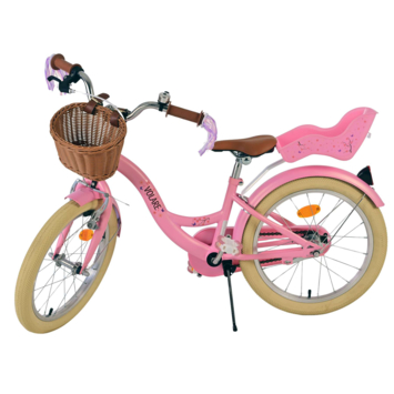 Met de Volare Blossom 18 inch kinderfiets wordt elke fietstocht een avontuur! Deze prachtige roze fiets is perfect voor kinderen die comfortabel én veilig op pad willen. Dankzij de handrem en terugtraprem komt jouw kind altijd gecontroleerd tot stilstand. De gesloten kettingkast beschermt kleine vingertjes en kleding, zodat de fietsrit zorgeloos blijft.